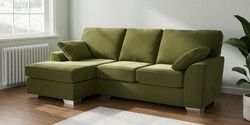 7.3.1 Buy Stamford Medium Sofa Chaise - Left Hand Plush Velvet Easy Clean Mid Olive Green Large Square Angle - Chrome Metal from the Seasons online shop Click here to use our website with more accessibility support, for example screen readers