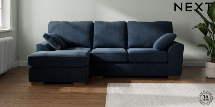 7.2.10 Buy Stamford Medium Sofa Chaise - Left Hand Ripple Chenille Dark Blue Large Square Angle - Mid from the Seasons online shop Click here to use our website with more accessibility support, for example screen readers
