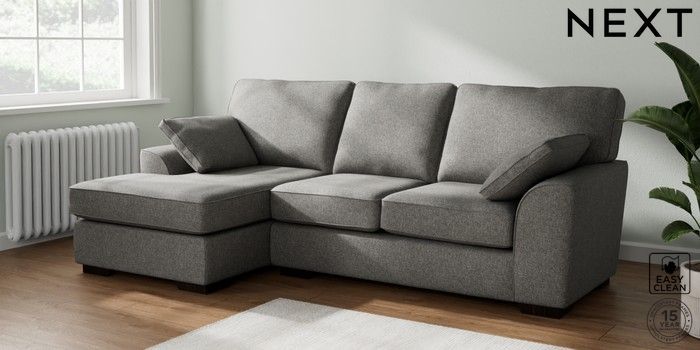 7.2.10 Buy Stamford Medium Sofa Chaise - Left Hand Tweedy Blend Easy Clean Dark Grey Large Square Angle - Dark from the Seasons online shop Click here to use our website with more accessibility support, for example screen readers