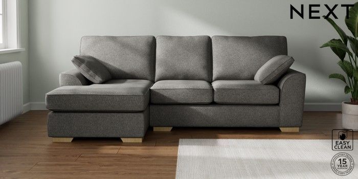 7.2.10 Buy Stamford Medium Sofa Chaise - Left Hand Tweedy Blend Easy Clean Dark Grey Large Square Angle - Light from the Seasons online shop Click here to use our website with more accessibility support, for example screen readers