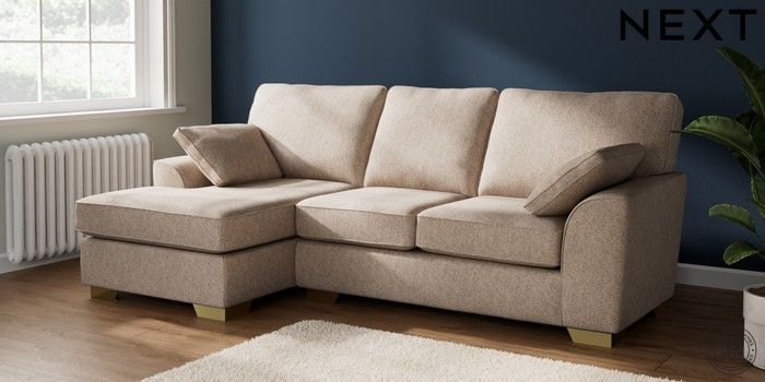 7.2.10 Buy Stamford Medium Sofa Chaise - Left Hand Tweedy Chenille Mid Natural Large Square Angle - Brushed Brass from the Seasons online shop Click here to use our website with more accessibility support, for example screen readers