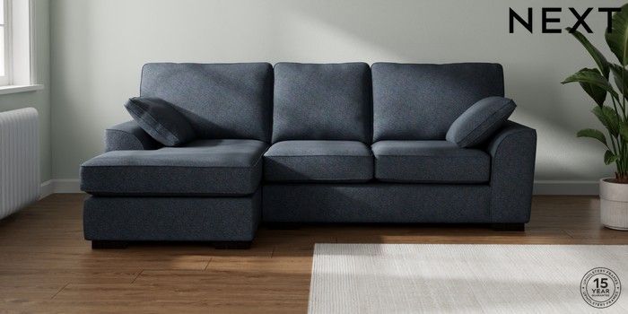 7.2.10 Buy Stamford Medium Sofa Chaise - Left Hand Tweedy Chenille Navy Blue Large Square Angle - Dark from the Seasons online shop Click here to use our website with more accessibility support, for example screen readers