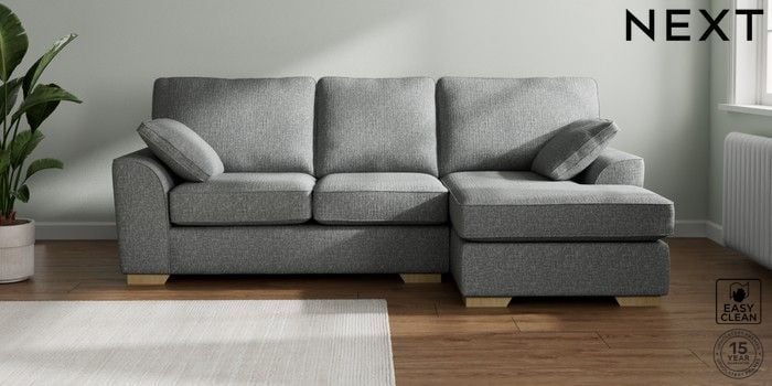 7.2.10 Buy Stamford Medium Sofa Chaise - Right Hand Chunky Boucle Easy Clean Mid Grey Large Square Angle - Light from the Seasons online shop Click here to use our website with more accessibility support, for example screen readers
