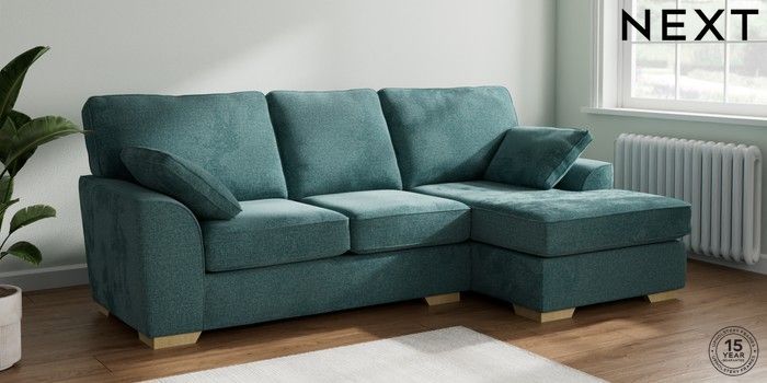 7.2.10 Buy Stamford Medium Sofa Chaise - Right Hand Chunky Chenille Mid Teal Green Large Square Angle - Light from the Seasons online shop Click here to use our website with more accessibility support, for example screen readers