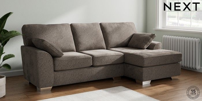 7.3.1 Buy Stamford Medium Sofa Chaise - Right Hand Chunky Chenille Mink Brown Large Square Angle - Chrome Metal from the Seasons online shop Click here to use our website with more accessibility support, for example screen readers