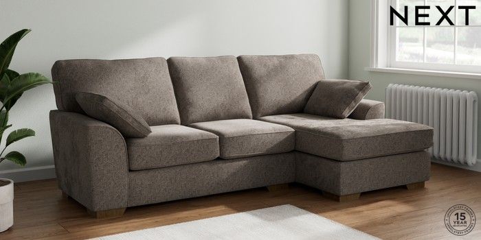 7.2.10 Buy Stamford Medium Sofa Chaise - Right Hand Chunky Chenille Mink Brown Large Square Angle - Mid from the Seasons online shop Click here to use our website with more accessibility support, for example screen readers