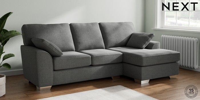 7.2.10 Buy Stamford Medium Sofa Chaise - Right Hand Chunky Texture Dark Grey Large Square Angle - Chrome Metal from the Seasons online shop Click here to use our website with more accessibility support, for example screen readers