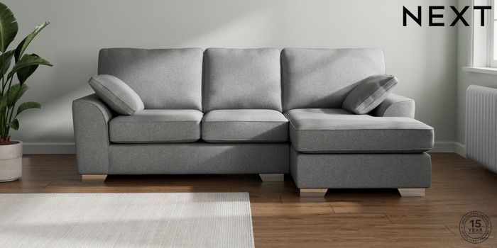 7.2.10 Buy Stamford Medium Sofa Chaise - Right Hand Chunky Weave Mid Grey Large Square Angle - Chrome Metal from the Seasons online shop Click here to use our website with more accessibility support, for example screen readers
