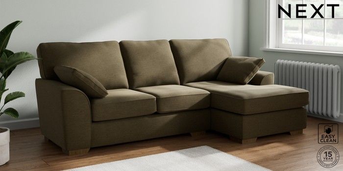 7.2.10 Buy Stamford Medium Sofa Chaise - Right Hand Fine Chenille Easy Clean Dark Moss Green Large Square Angle - Mid from the Seasons online shop Click here to use our website with more accessibility support, for example screen readers