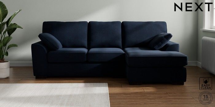 7.2.10 Buy Stamford Medium Sofa Chaise - Right Hand Fine Chenille Easy Clean Dark Navy Blue Large Square Angle - Dark from the Seasons online shop Click here to use our website with more accessibility support, for example screen readers