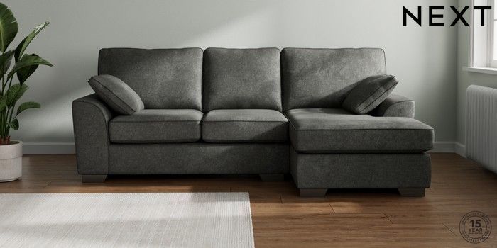 7.2.10 Buy Stamford Medium Sofa Chaise - Right Hand Plush Chenille Dark Grey Large Square Angle - Gunmetal from the Seasons online shop Click here to use our website with more accessibility support, for example screen readers