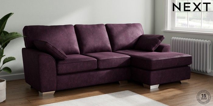 7.3.1 Buy Stamford Medium Sofa Chaise - Right Hand Plush Chenille Dark Plum Purple Large Square Angle - Chrome Metal from the Seasons online shop Click here to use our website with more accessibility support, for example screen readers