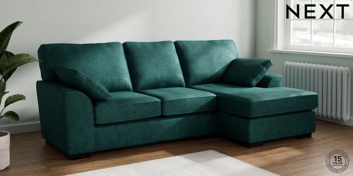7.2.10 Buy Stamford Medium Sofa Chaise - Right Hand Plush Chenille Dark Teal Green Large Square Angle - Dark from the Seasons online shop Click here to use our website with more accessibility support, for example screen readers
