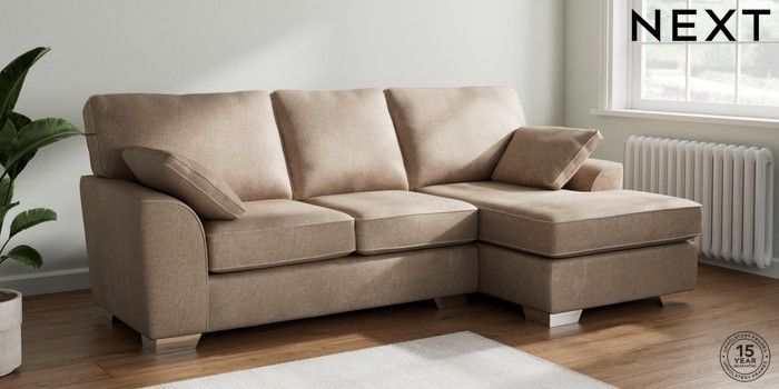 7.2.10 Buy Stamford Medium Sofa Chaise - Right Hand Plush Chenille Mid Natural Large Square Angle - Chrome Metal from the Seasons online shop Click here to use our website with more accessibility support, for example screen readers