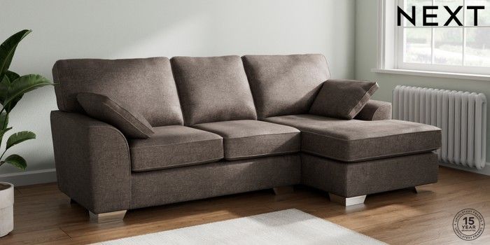 7.3.1 Buy Stamford Medium Sofa Chaise - Right Hand Plush Chenille Mink Brown Large Square Angle - Chrome Metal from the Seasons online shop Click here to use our website with more accessibility support, for example screen readers