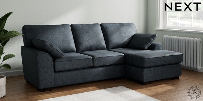 7.2.10 Buy Stamford Medium Sofa Chaise - Right Hand Plush Chenille Slate Blue Large Square Angle - Dark from the Seasons online shop Click here to use our website with more accessibility support, for example screen readers