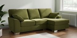 7.3.1 Buy Stamford Medium Sofa Chaise - Right Hand Plush Velvet Easy Clean Mid Olive Green Large Square Angle - Chrome Metal from the Seasons online shop Click here to use our website with more accessibility support, for example screen readers