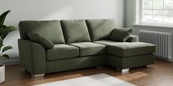 7.3.1 Buy Stamford Medium Sofa Chaise - Right Hand Relaxed Linen Look Dark Green Large Square Angle - Chrome Metal from the Seasons online shop Click here to use our website with more accessibility support, for example screen readers