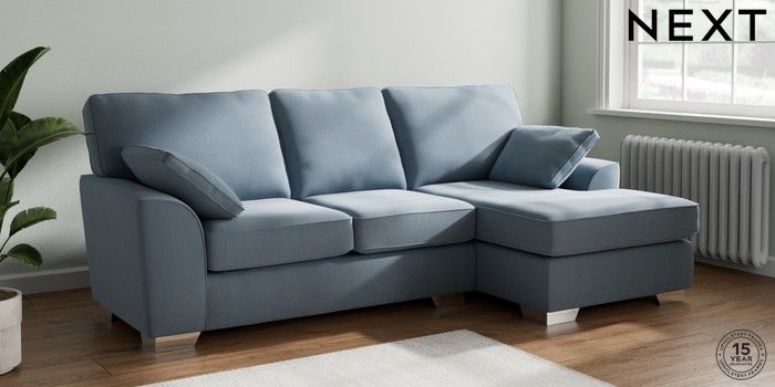 7.3.1 Buy Stamford Medium Sofa Chaise - Right Hand Relaxed Linen Look Mid Blue Large Square Angle - Chrome Metal from the Seasons online shop Click here to use our website with more accessibility support, for example screen readers