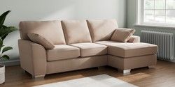 7.3.1 Buy Stamford Medium Sofa Chaise - Right Hand Relaxed Linen Look Mid Natural Large Square Angle - Chrome Metal from the Seasons online shop Click here to use our website with more accessibility support, for example screen readers