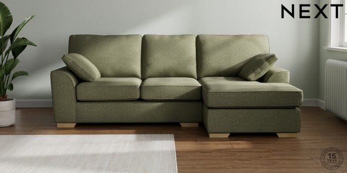 7.2.10 Buy Stamford Medium Sofa Chaise - Right Hand Tweedy Chenille Mid Moss Green Large Square Angle - Light from the Seasons online shop Click here to use our website with more accessibility support, for example screen readers