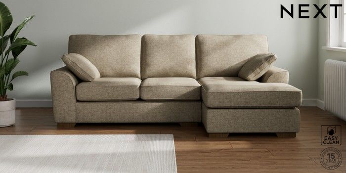 7.2.10 Buy Stamford Medium Sofa Chaise - Right Hand Woven Chenille Easy Clean Mid Natural Large Square Angle - Mid from the Seasons online shop Click here to use our website with more accessibility support, for example screen readers