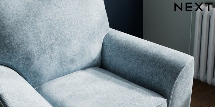 7.3.1 Buy Stamford Small Armchair Plush Chenille Light Blue Square Angle - Chrome Metal from the Seasons online shop Click here to use our website with more accessibility support, for example screen readers