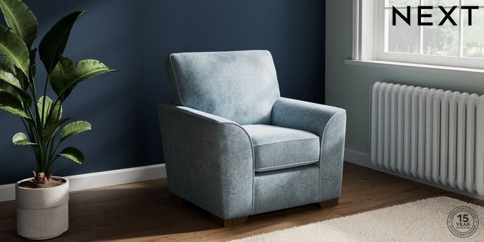 7.2.10 Buy Stamford Small Armchair Plush Chenille Light Blue Square Angle - Mid from the Seasons online shop Click here to use our website with more accessibility support, for example screen readers