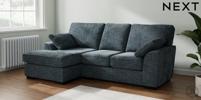 7.2.10 Buy Stamford Small Sofa Chaise - Left Hand Chunky Chenille Dark Navy Blue Large Square Angle - Dark from the Seasons online shop Click here to use our website with more accessibility support, for example screen readers