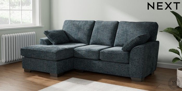 7.3.1 Buy Stamford Small Sofa Chaise - Left Hand Chunky Chenille Dark Navy Blue Large Square Angle - Gunmetal from the Seasons online shop Click here to use our website with more accessibility support, for example screen readers