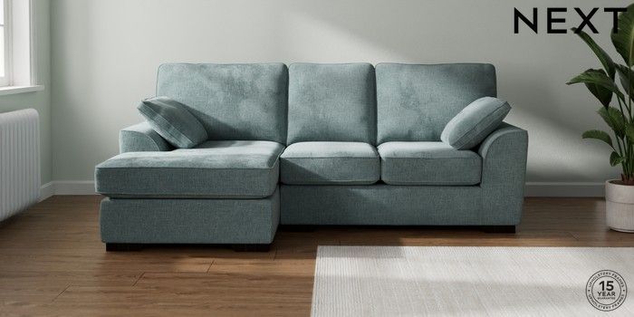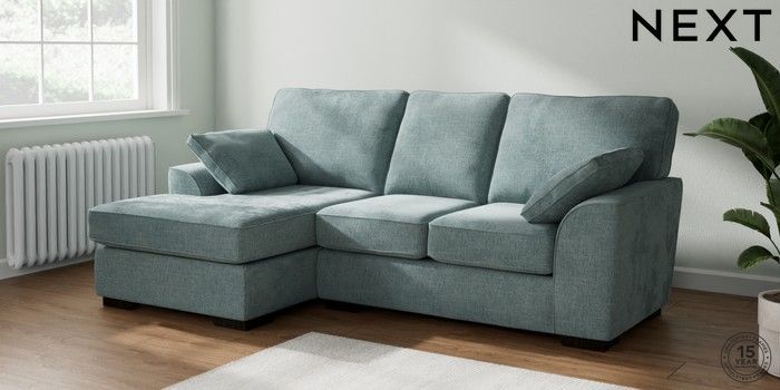 7.2.10 Buy Stamford Small Sofa Chaise - Left Hand Chunky Chenille Light Teal Green Large Square Angle - Dark from the Seasons online shop Click here to use our website with more accessibility support, for example screen readers