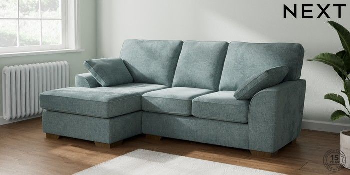 7.2.10 Buy Stamford Small Sofa Chaise - Left Hand Chunky Chenille Light Teal Green Large Square Angle - Mid from the Seasons online shop Click here to use our website with more accessibility support, for example screen readers