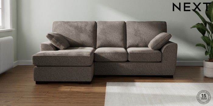 7.2.10 Buy Stamford Small Sofa Chaise - Left Hand Chunky Chenille Mink Brown Large Square Angle - Dark from the Seasons online shop Click here to use our website with more accessibility support, for example screen readers