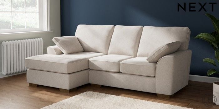 7.2.10 Buy Stamford Small Sofa Chaise - Left Hand Chunky Chenille Oyster Large Square Angle - Mid from the Seasons online shop Click here to use our website with more accessibility support, for example screen readers