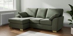 7.2.10 Buy Stamford Small Sofa Chaise - Left Hand Chunky Texture Mid Forest Green Large Square Angle - Brushed Brass from the Seasons online shop Click here to use our website with more accessibility support, for example screen readers