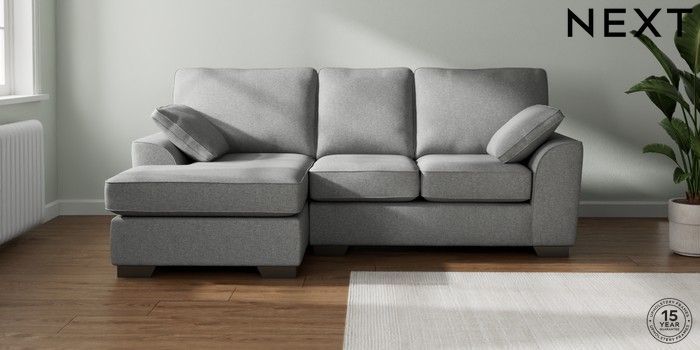 7.3.1 Buy Stamford Small Sofa Chaise - Left Hand Chunky Weave Mid Grey Large Square Angle - Gunmetal from the Seasons online shop Click here to use our website with more accessibility support, for example screen readers