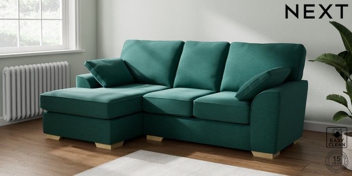7.2.10 Buy Stamford Small Sofa Chaise - Left Hand Fine Chenille Easy Clean Dark Juniper Green Large Square Angle - Light from the Seasons online shop Click here to use our website with more accessibility support, for example screen readers