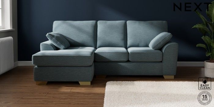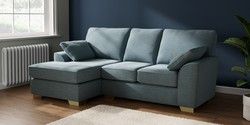 7.2.10 Buy Stamford Small Sofa Chaise - Left Hand Fine Chenille Easy Clean Mid Blue Large Square Angle - Brushed Brass from the Seasons online shop Click here to use our website with more accessibility support, for example screen readers