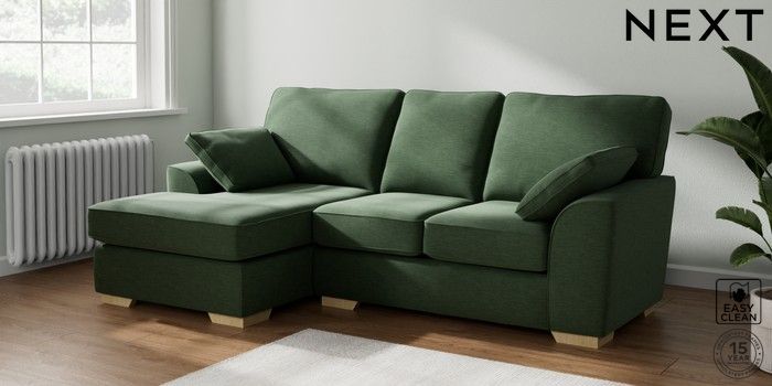 7.2.10 Buy Stamford Small Sofa Chaise - Left Hand Fine Chenille Easy Clean Mid Khaki Green Large Square Angle - Light from the Seasons online shop Click here to use our website with more accessibility support, for example screen readers
