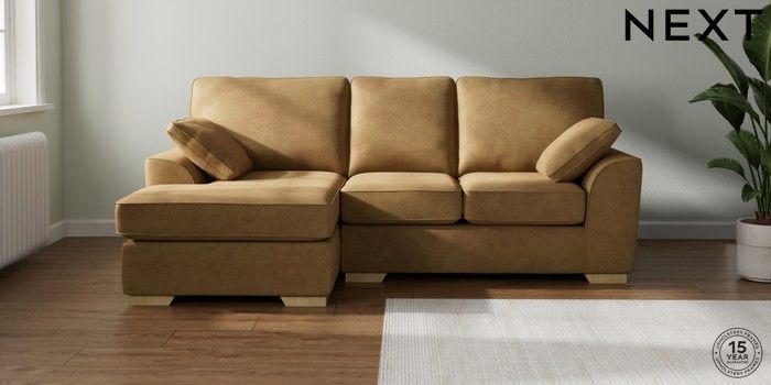 7.2.10 Buy Stamford Small Sofa Chaise - Left Hand Luxe Chenille Honey Yellow Large Square Angle - Light from the Seasons online shop Click here to use our website with more accessibility support, for example screen readers