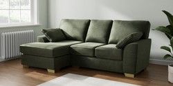 7.2.10 Buy Stamford Small Sofa Chaise - Left Hand Luxe Chenille Mid Green Large Square Angle - Brushed Brass from the Seasons online shop Click here to use our website with more accessibility support, for example screen readers