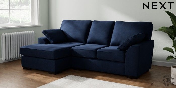 7.2.10 Buy Stamford Small Sofa Chaise - Left Hand Luxe Chenille Navy Blue Large Square Angle - Dark from the Seasons online shop Click here to use our website with more accessibility support, for example screen readers