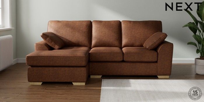 7.3.1 Buy Stamford Small Sofa Chaise - Left Hand Monza Faux Leather Easy Clean Chestnut Brown Large Square Angle - Light from the Seasons online shop Click here to use our website with more accessibility support, for example screen readers
