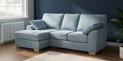 7.2.10 Buy Stamford Small Sofa Chaise - Left Hand Plush Chenille Light Blue Large Square Angle - Brushed Brass from the Seasons online shop Click here to use our website with more accessibility support, for example screen readers
