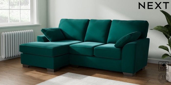 7.3.1 Buy Stamford Small Sofa Chaise - Left Hand Plush Velvet Easy Clean Juniper Green Large Square Angle - Gunmetal from the Seasons online shop Click here to use our website with more accessibility support, for example screen readers
