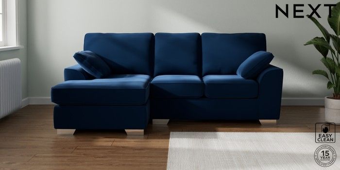 7.3.1 Buy Stamford Small Sofa Chaise - Left Hand Plush Velvet Easy Clean Navy Blue Large Square Angle - Chrome Metal from the Seasons online shop Click here to use our website with more accessibility support, for example screen readers