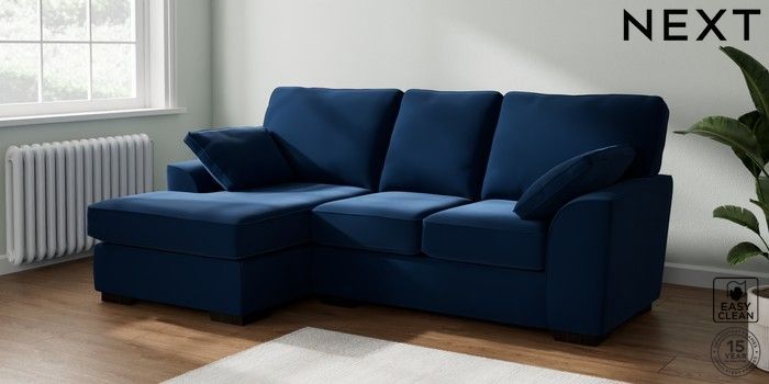 7.3.1 Buy Stamford Small Sofa Chaise - Left Hand Plush Velvet Easy Clean Navy Blue Large Square Angle - Dark from the Seasons online shop Click here to use our website with more accessibility support, for example screen readers