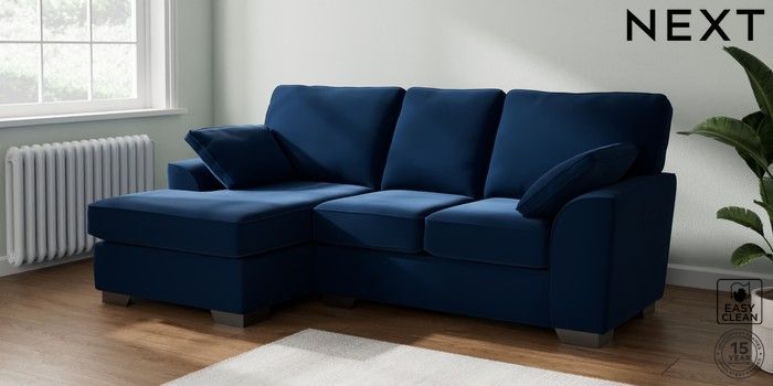 7.3.1 Buy Stamford Small Sofa Chaise - Left Hand Plush Velvet Easy Clean Navy Blue Large Square Angle - Gunmetal from the Seasons online shop Click here to use our website with more accessibility support, for example screen readers
