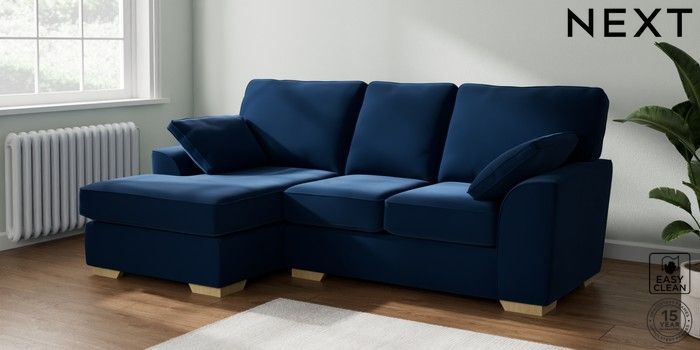7.3.1 Buy Stamford Small Sofa Chaise - Left Hand Plush Velvet Easy Clean Navy Blue Large Square Angle - Light from the Seasons online shop Click here to use our website with more accessibility support, for example screen readers