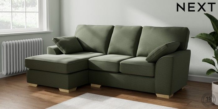 7.3.1 Buy Stamford Small Sofa Chaise - Left Hand Relaxed Linen Look Dark Green Large Square Angle - Light from the Seasons online shop Click here to use our website with more accessibility support, for example screen readers